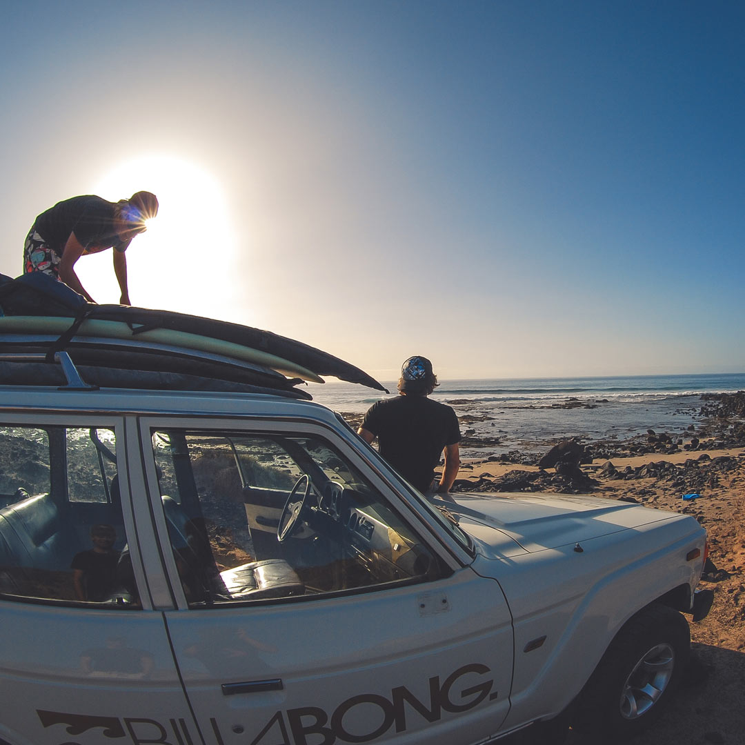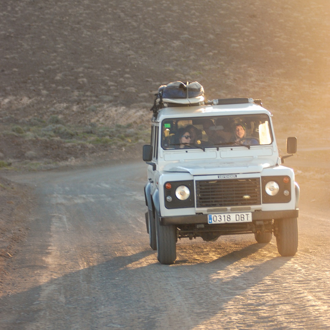 Ogni giorno raggiungiamo con i nostri fuoristrada 4x4 lo spot con le migliori onde per il livello dei nostri partecipanti. Così puoi scoprire non solo il surf, ma anche i paesaggi e l’autentica atmosfera di Fuerteventura.
