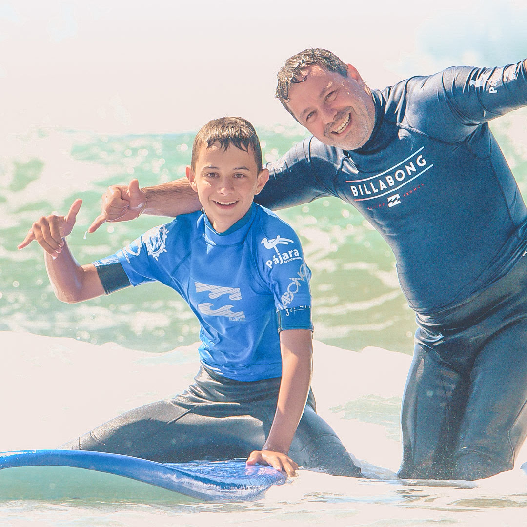 Per i bambini sotto gli 11 anni che partecipano al corso senza genitori, offriamo lezioni di surf semi-private con massimo 4 bambini per istruttore. Così garantiamo un supporto personalizzato: dalla scelta dell’onda alla gestione della tavola.