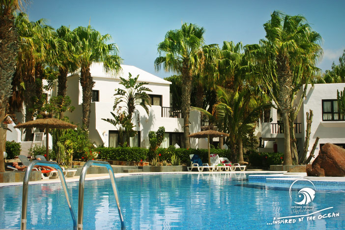 L'intero villaggio si estende in leggera discesa intorno all'ampia baia sabbiosa di Costa Calma verso la spiaggia. Ciò significa che da ogni punto del villaggio si gode di una splendida vista sull'Oceano Atlantico blu e calmo.