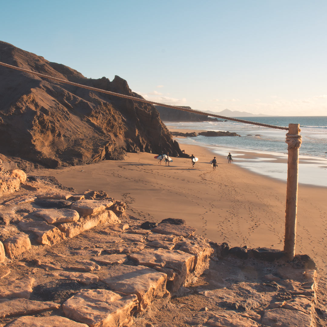 Un'altra bella destinazione per escursioni a piedi e in mountain bike è naturalmente la regione desertica dell'isola a sud di La Pared, nota anche come “Istmo de La Pared”. Qui si trovano molte piante endemiche che si sono ben adattate alle condizioni aride dell'isola. In questo paesaggio unico si incontrano capre solitarie, asini e simpatici scoiattoli dell'Atlante. La meta di questa escursione può essere l'infinita spiaggia sabbiosa di Cofete o la grande laguna di marea di Sotavento, sulla costa orientale.